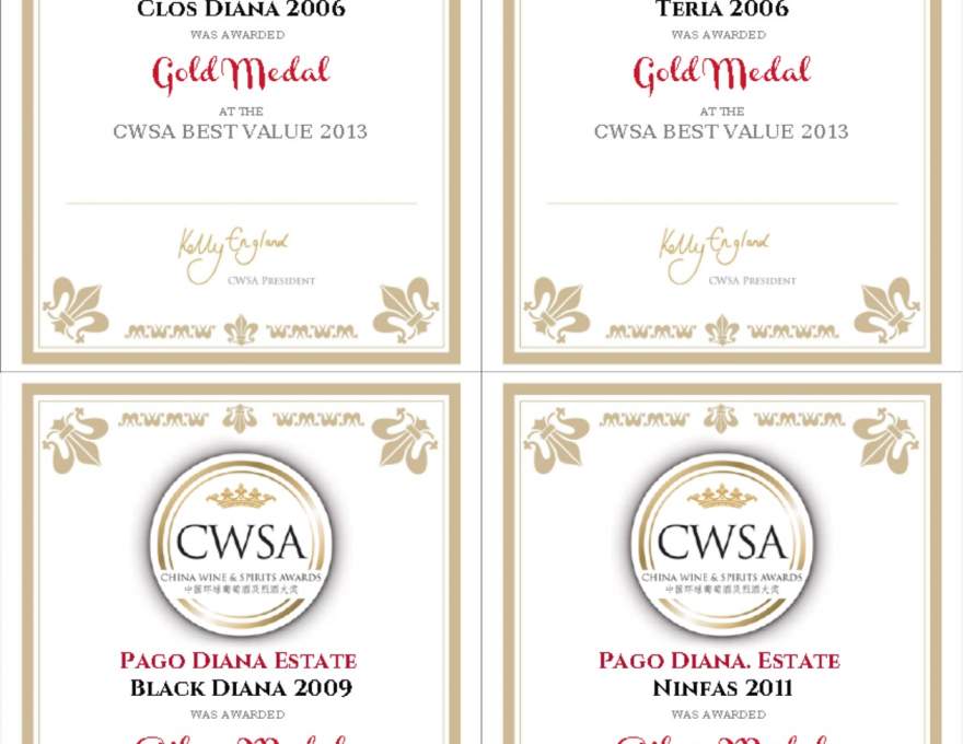 Since the 2004 vintage the winery has been producing five different wines: three reds, namely TERIA (Merlot, Cabernet Sauvignon, Tempranillo), CLOS DIANA (Syrah) and BLACK DIANA (Tempranillo); one sparkling rosé, DIANEL.LO (Tempranillo); and one white, NINFAS (Verdejo, Gewürztraminer).